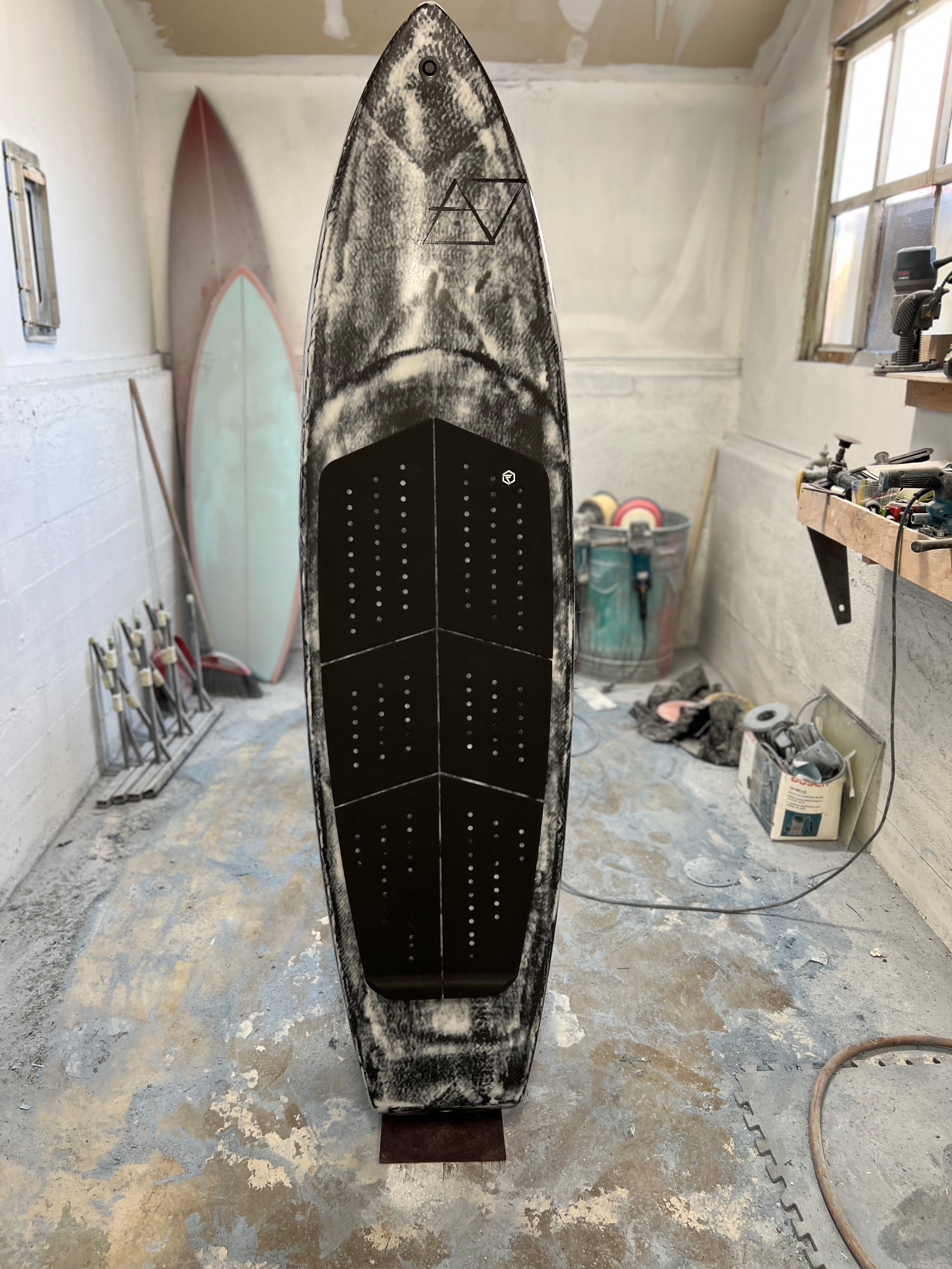 This new Downwind foilboard was custom-designed for Hawaiian rider "Pono" as we all know him, blending traditional Hawaiian aesthetics with cutting-edge performance. Crafted in Southern and Central California, this sleek, lightweight carbon board features a narrow outline and optimized rocker for effortless glide and early takeoff in Hawaii’s dynamic trade wind conditions. Tailored to Pono's smooth but aggressive riding style, this board offers superior stability and maneuverability, making it ideal for tackling challenging downwind runs like Hawaii Kai to Kahala.